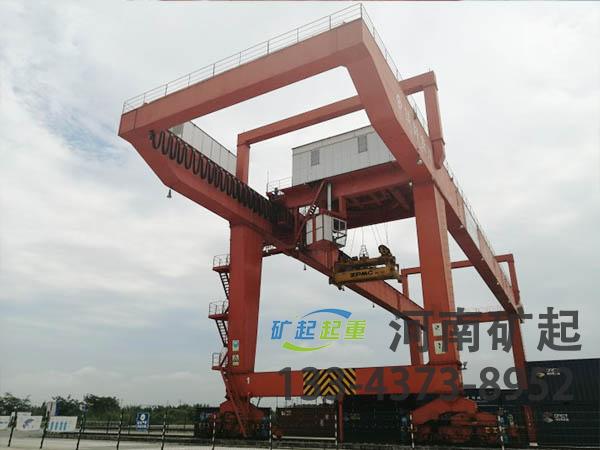 廣東廣州集裝箱門式起重機主要用于集裝箱鐵路轉運場和大型集裝箱儲運場的集裝箱卸載、搬運和堆放。軌道式集裝箱門式起重機由主梁、剛性和柔性門腿、運行小車、起升機構、大車運行機構、電氣系統(tǒng)、操作駕駛室等組成。軌道式集裝箱門式起重機一般要求門腿內(nèi)的寬度方向凈空較大,故采用門腿上部敞開成U形和門腿上部連通,并架設小車檢修架。