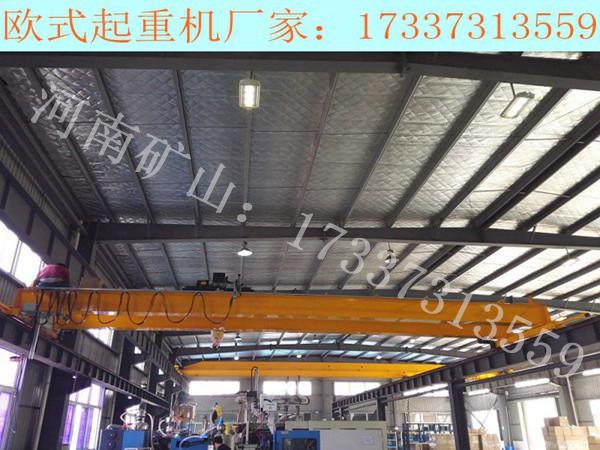 湖北咸寧歐式起重機(jī)廠家17337313559介紹歐式起重機(jī)的特點(diǎn): 歐式起重機(jī)實(shí)現(xiàn)了0—45m/min的變頻無級調(diào)速,采用低凈空設(shè)計(jì),有效地增加了調(diào)運(yùn)空間,其獨(dú)特的 c 型結(jié)構(gòu)也提高了調(diào)運(yùn)空間。 歐式起重機(jī)啟動(dòng)運(yùn)行平穩(wěn),無沖擊,靜音效果好,可減少噪音的危害。 歐式起重機(jī)故障率低,在很大程度上降低了維修成本,使用壽命長達(dá)30年,無后顧之憂。 歐式起重機(jī)優(yōu)化設(shè)計(jì),不僅自重輕,還可用編程起升限位,并且防護(hù)等級為IP55、H級絕緣,能夠?qū)崿F(xiàn)多方位保護(hù),作用更加強(qiáng)大。 在系統(tǒng)組成上有硬齒面減速機(jī),承載力高、壽命長,電磁盤式制動(dòng)器,防塵,自調(diào)試剎車不用人工調(diào)整,半油脂潤滑及高強(qiáng)鍍鋅防銹鋼絲繩免維護(hù),并且有電機(jī)、制動(dòng)器、減速箱三合一進(jìn)行驅(qū)動(dòng)。 歐式起重機(jī)可用于倉庫裝卸、物料搬運(yùn)、模具裝配等工作范圍。